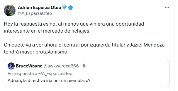 En redes sociales, el periodista Adrián Esparza aclaró que, si bien Chiquete ocuparía el lugar como central por izquierda, el gran beneficiado sería Jaziel Mendoza. El joven futbolista tendría mayor protagonismo dentro del esquema, ganando minutos y oportunidades en un plantel que se prepara para afrontar un semestre intenso.