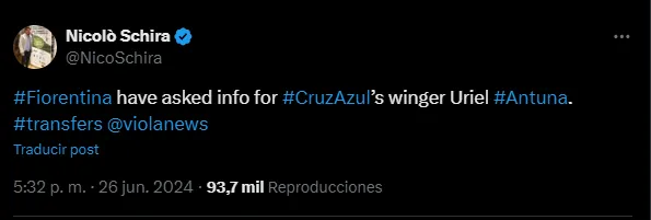 El primero en aparecer sondeando la situación fue Rayados de Monterrey, en donde el periodista de Fox Sports, Alex Blanco, dio detalles al respecto: “Tengo información sobre el azul , se que que hay MUCHO interés desde el norte por Uriel antuna. El equipo que lo quiere se va a RAYAR”, en una clara mención a dicho equipo sin la necesidad de nombrarlo.