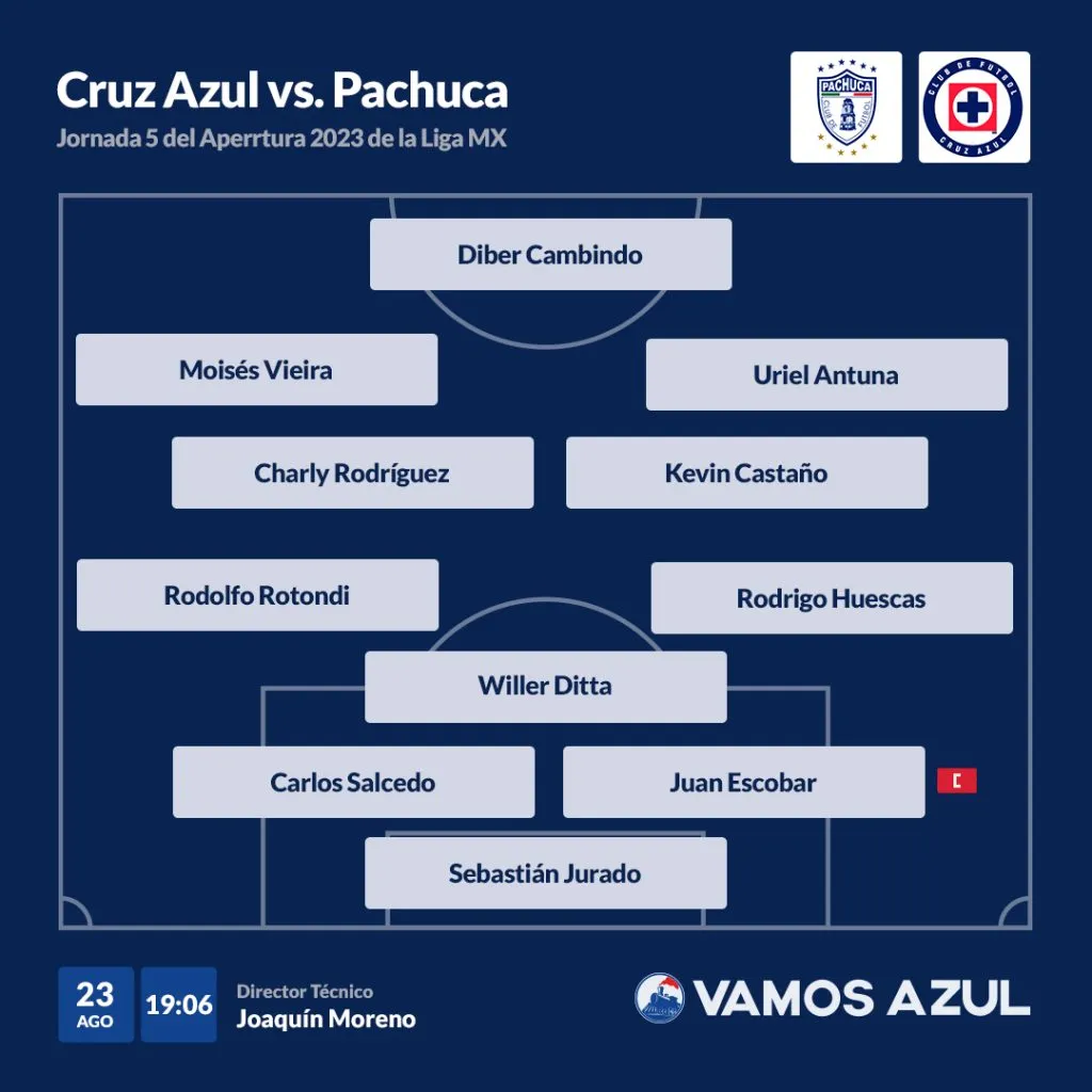 De esta manera, además del canterano celeste podría haber otro cambio de Cruz Azul a la ofensiva, en busca de los goles que puedan sellar el primer triunfo en el Apertura 2023, con lo que podría regresar Moisés Vieira al 11 inicial y relegar a Erik Lira.