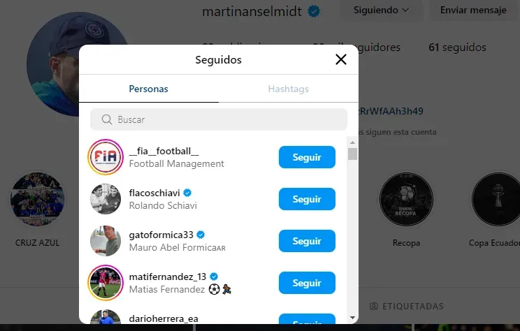 Entre ellos, se encuentran cuentas de algunos de sus exequipos, varios futbolistas y por supuesto la de Cruz Azul y el director deportivo, Iván Alonso. Aunque, lo extraño es que Martín Anselmi no sigue a ni un solo jugador de la plantilla cementera.