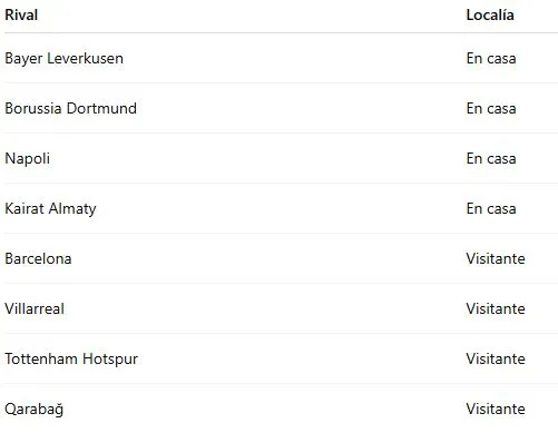 Los rivales que tendrá Rodrigo Huescas son: Bayer Leverkusen, Borussia Dortmund, Napoli, Kairat Almaty (Kazajistán), Barcelona, Villarreal, Tottenham y Qarabağ (Azerbaiyán). Sin dudas resulta un gran orgullo enfrentar a estrellas como Lamine Yamal, Raphinha, Alejandro Grimaldo y Karim Adeyemi, entre muchos otros. Hay muchas expectativas de ver al ex Cruz Azul en la élite del futbol.
