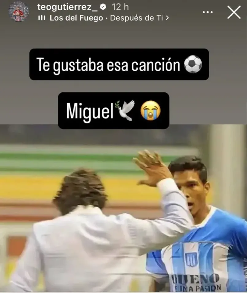 Después Teo Gutiérrez le dedicó otro mensaje a Miguel Russo, con una historia de Instagram que decía: “Te gustaba esa canción”, refiriéndose a ‘Después de Ti’ del grupo argentino Los del Fuego, una reversión del éxito del compositor Alejandro Lerner. Sin dudas, palabras emotivas que tocan el alma.