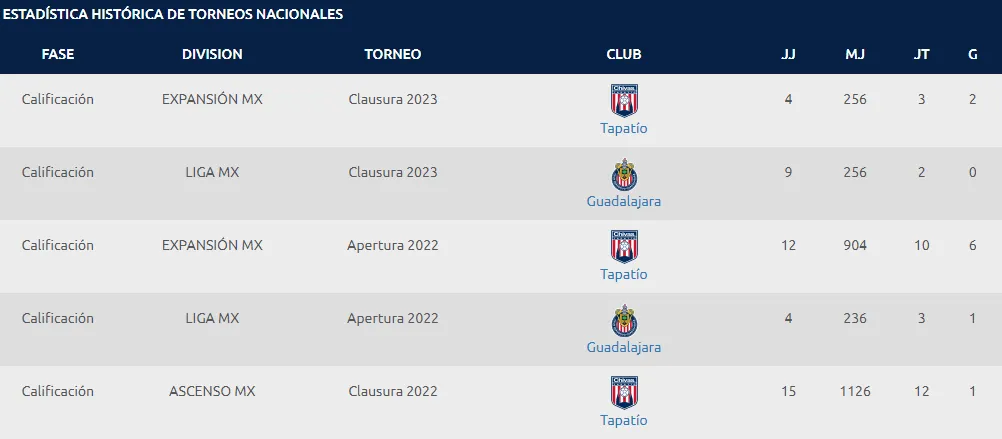 Mientras que en la Liga de Expansión, el Tepa registró en el torneo pasado un ntotal de 6 goles en 12 partidos, contando la Fase Regular y la Liguilla del Clausura 2023, de los cuales fue titular en nueve.