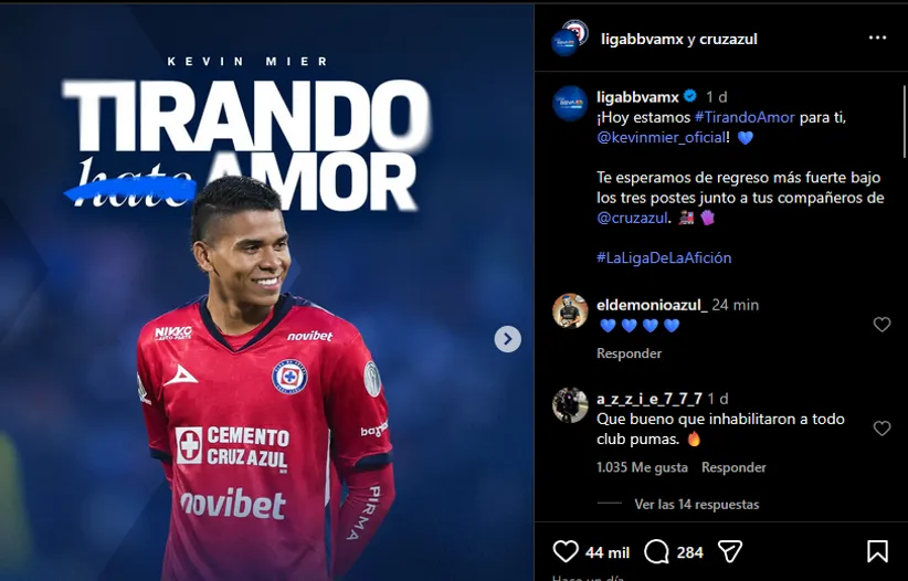 Mientras tanto, en las redes sociales de la competencia le dejaron un tierno mensaje al portero con pasado en Atlético Nacional: bajo el lema “tirando amor”, Mier fue apoyado por el organismo mexicano y todos los comentarios posteriores, en donde aficionados de diversos equipos se expresaron.