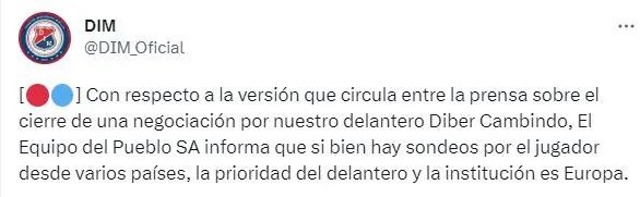 Más allá de que Cruz Azul se ha mostrado muy interesado en él, lo cierto es que Independiente Medellín comunicó en sus redes sociales que todavía no se ha cerrado ninguna operación por el delantero. De hecho, tanto el club como el futbolista están esperando a que lleguen ofertas de Europa. Por lo tanto, resulta un fichaje bastante complicado para el conjunto mexicano.