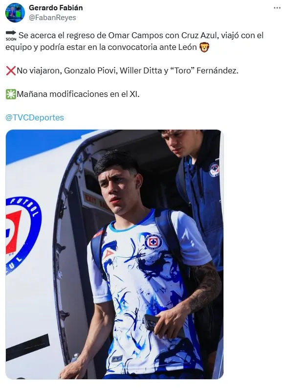 Según informó Gerardo Fabián Reyes, Omar Campos podría volver a la lista en el juego frente a León. El problema que hay con el ex LAFC es que viene sin ritmo de competencia, por lo que resulta complicado que pueda tener minutos a lo largo de la liguilla. Sobre todo considerando que Rodolfo Rotondi es una pieza tan importante en el plantel que es difícil que salga del equipo.