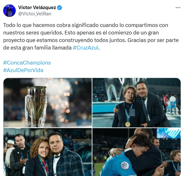 Pero más allá de todo eso, el mensaje que Velázquez compartió días después en sus redes sociales impactó en la afición. El presidente optó por un tono humano, cercano y emotivo: “Todo lo que hacemos cobra significado cuando lo compartimos con nuestros seres queridos. Esto apenas es el comienzo de un gran proyecto que estamos construyendo todos juntos. Gracias por ser parte de esta gran familia llamada Cruz Azul“.