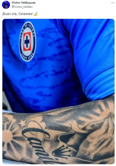 Y es que, Víctor Velázquez publicó una foto en sus redes sociales en la que se puede ver el brazo de Jorge Sánchez. La afición lo descubrió de inmediato debido a los tatuajes que se pueden ver; además, ya se le veía portando el uniforme de Cruz Azul, tal como lo hizo desde este miércoles.