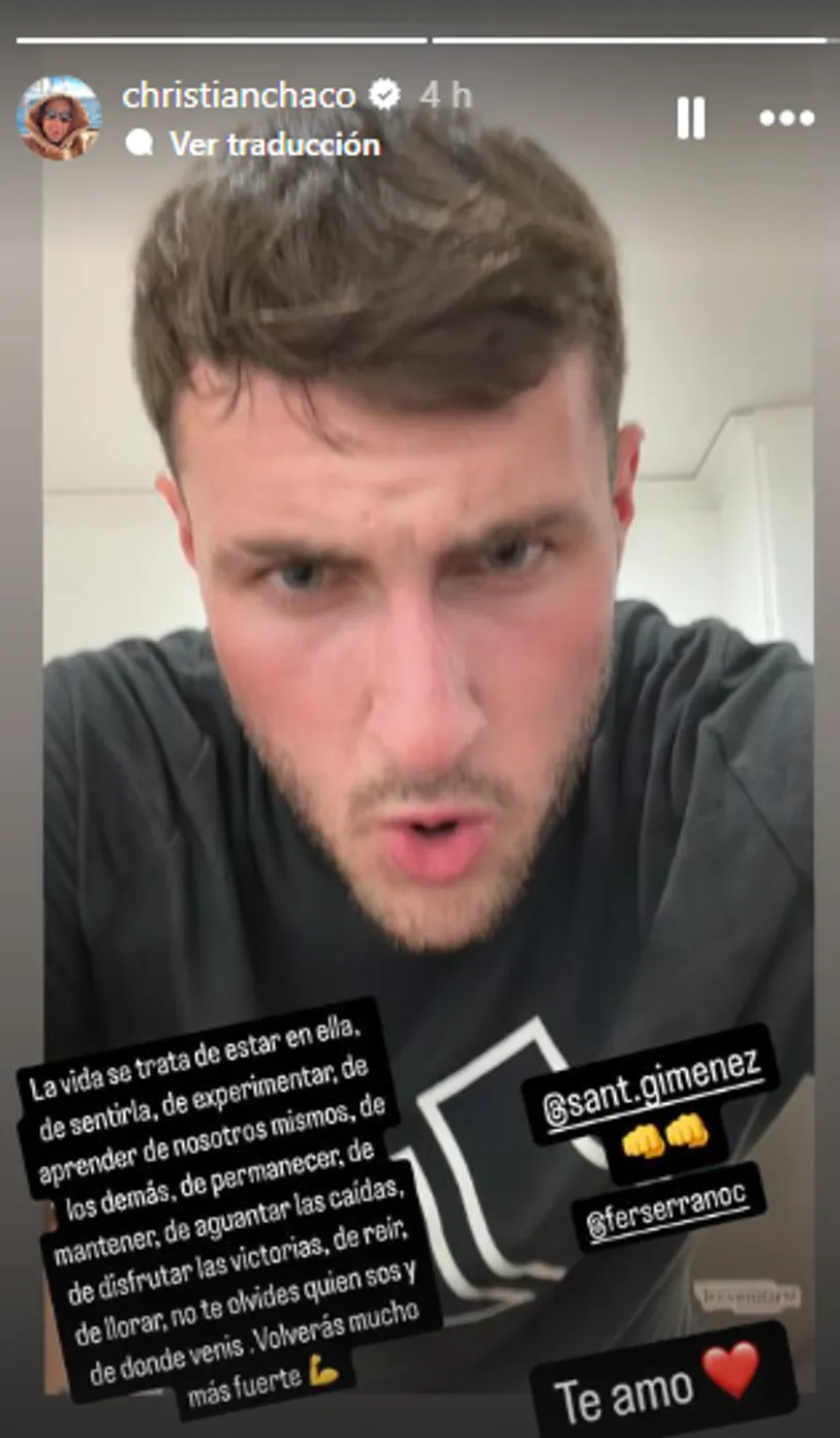 “La vida se trata de estar en ella, de sentirla, de experimentar, de aprender de nosotros mismos y de los demás, de perdonar, de mantener, de aguantar las caídas, de disfrutar los aciertos, de reír, de llorar, de no olvidar quién eres y de dónde vienes, de ser fuerte. Te amo”, expresó el Chaco en una historia de Instagram.