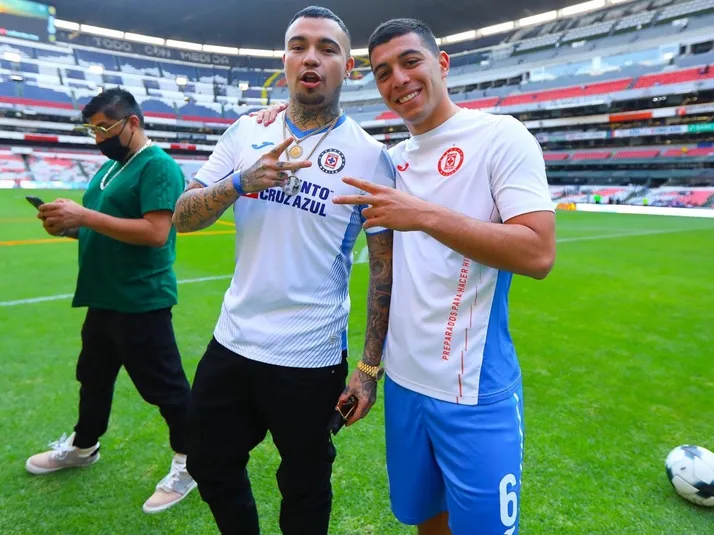 ¡El amuleto celeste! El rapero Gera MX visitó a Cruz Azul